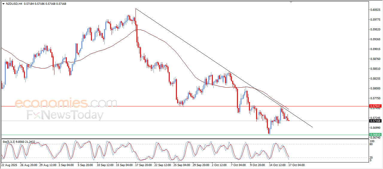 The (NZDUSD) price declined in its last intraday trading, amid the dominance of the main bearish trend on the short-term basis and its trading alongside trendline, supported by the stability of its trading below EMA50, reducing the chances of its recovery on the short-term basis, especially with the emergence of the negative signals on the relative strength indicators, despite reaching oversold levels.