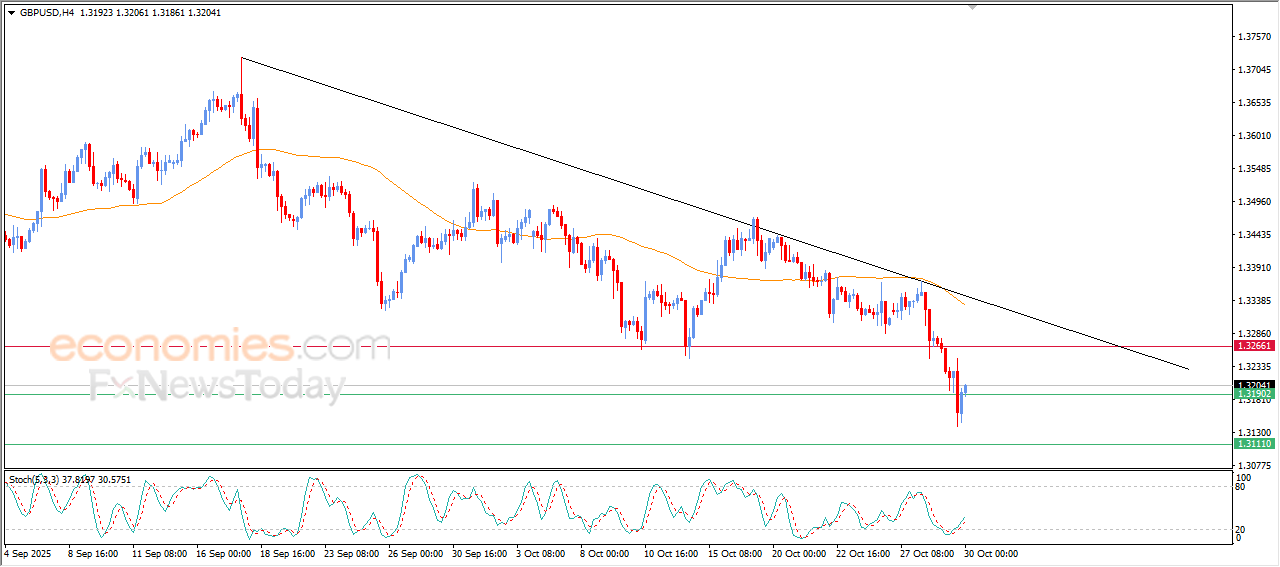 The (GBPUSD) price witnessed cautious gains during its last intraday trading, after the stability of 1.3190 support, this support represents our target in our previous analysis. The price is attempting to recover some of its previous losses, and offloading some of the clear oversold conditions on the relative strength indicators, especially with the emergence of the positive signals, amid the dominance of the main bearish trend on the short-term basis and its trading alongside supportive trendline.