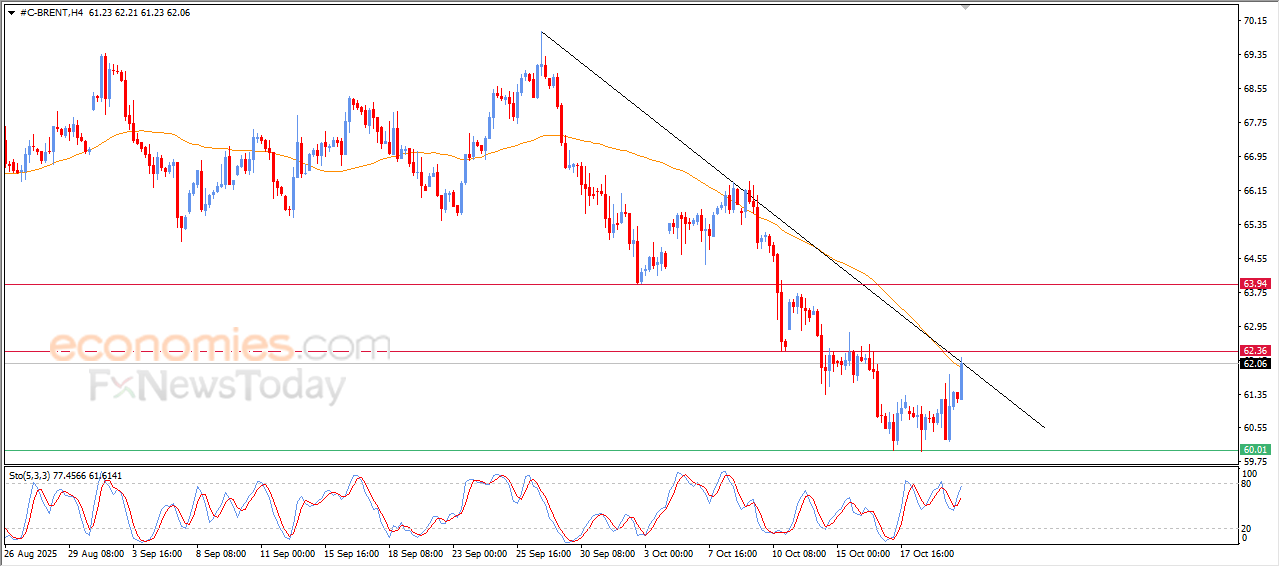 The (Brent) price rose high during its last intraday levels, supported by the emergence of the positive signals on the relative strength indicators, after offloading its overbought conditions, providing it bullish momentum to achieve more gains, to reach main bearish trendline on the short-term basis, accompanied by hitting the resistance of EMA50.