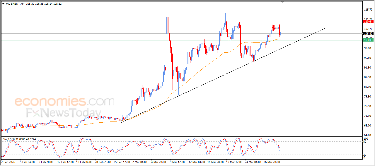 Brent crude oil declined slightly during recent intraday trading, amid negative signals from the relative strength indicators. The price is attempting to build positive momentum that could help it recover and resume upward movement. This comes while trading remains above EMA50, providing dynamic support and reinforcing the short-term bullish trend, with prices moving alongside a supportive trendline. Additionally, the relative strength indicators entered deeply oversold levels relative to price, suggesting a potential rebound.