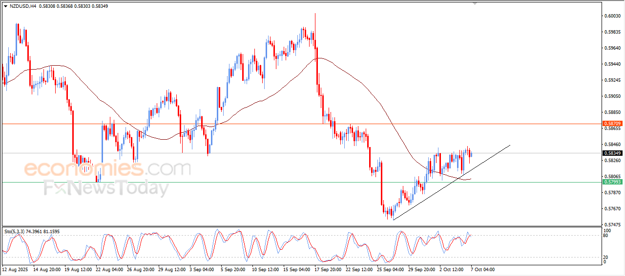 The (NZDUSD) price settled low in its last intraday trading, attempting to gain a new bullish momentum to help it to recover and rise again, and it is attempting to offload some of its overbought conditions on the relative strength indicators, especially with the emergence of the bearish crossover signals, amid the dominance of bullish corrective wave on the short-term basis and its trading alongside trendline, with the continuation of the positive pressure due to its trading above EMA50, reinforcing the chances for the price recovery on the near-term basis.