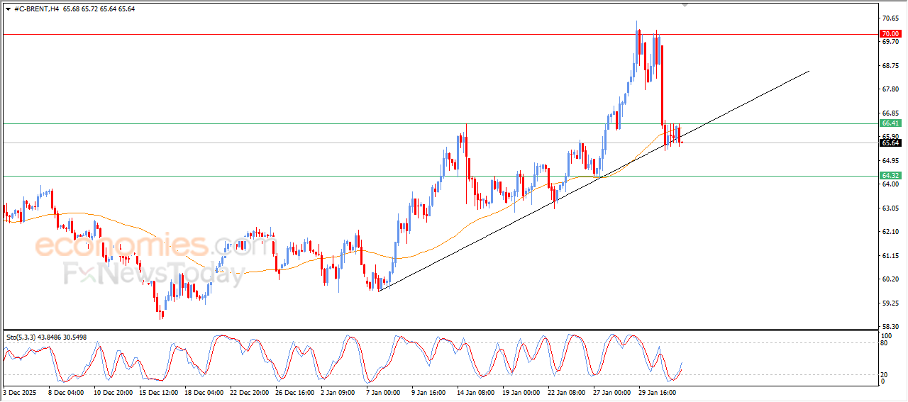 The (Brent) price fluctuated in its last intraday trading, with negative pressure due to its trading below EMA50, with the dominance of steep bearish wave, on the other hand, the price is leaning on the support line of a minor bullish trend on the short-term basis, with the emergence of positive signals from relative strength indicators, after reaching oversold levels, to offload some of these oversold conditions, indicating a quick decline on the bullish momentum.