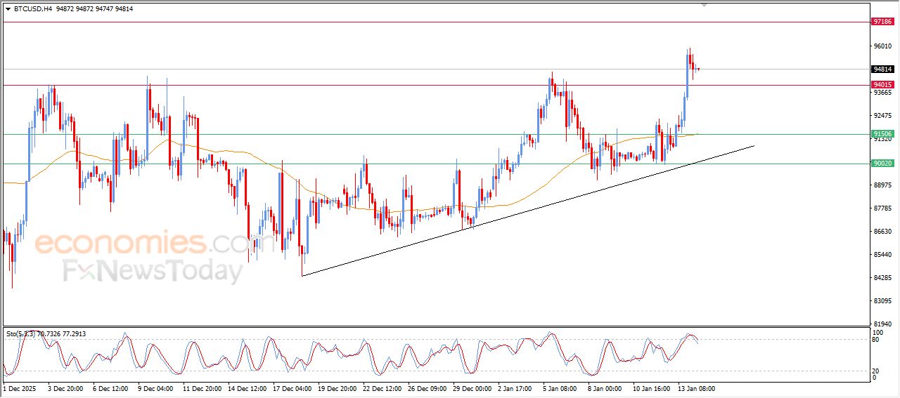 BTCUSD’s price declined in its recent intraday trading, to gather the gains of its previous rises, attempting to gain bullish momentum that might help it to recover and rise again, and it attempts to offload its clear overbought levels on the relative strength indicators, especially with the emergence of the negative signals from there, amid the dominance of the main bullish trend on the short-term basis, with its trading alongside supportive trend line for this trend.