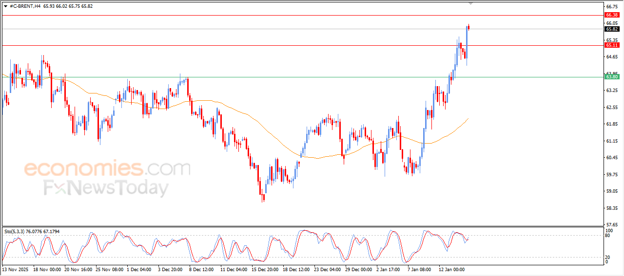 Brent crude oil’s prices surged higher in its last intraday trading, to breach $65.00 resistance, which was an expected target in our previous analysis, amid the dominance of the main bullish trend on the short-term basis, with the continuation of the positive pressure due to its trading above EMA50, noticing the emergence of positive signals from the relative strength indicators, after offloading its overbought conditions, opening the way for achieving more gains in the upcoming period.