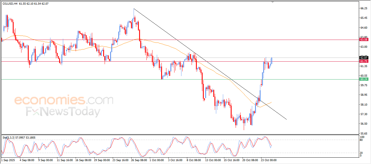 The price of (crude oil) rose in its last intraday trading, breaching the key resistance at $61.75, amid the dominance of the bullish corrective trend on the short-term basis, with the continuation of the dynamic pressure that is represented by its trading above EMA50, this rise came after offloading the overbought conditions on the relative strength indicators, opening the way for achieving more of the gains on the near-term basis.