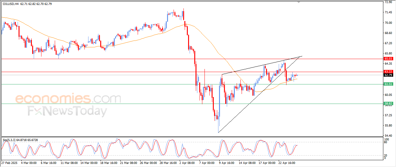 Therefore, our expectations suggest (crude oil) decline in its upcoming intraday trading, if it remains stable below $63.20, to target the support at $61.50, preparing to break below it.