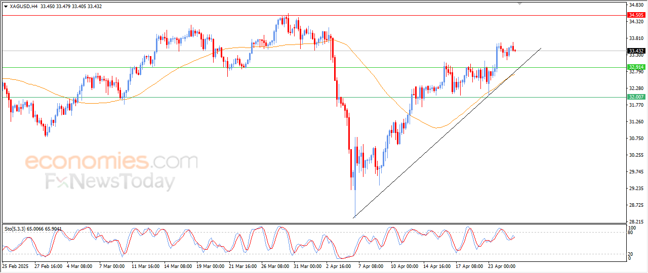 Therefore, our expectations suggest a silver price rise in its upcoming intraday trading, if the support level remains stable above $32.90, to target the key resistance at $34.50, which represents a critical level to confirm the continuation of the gains.