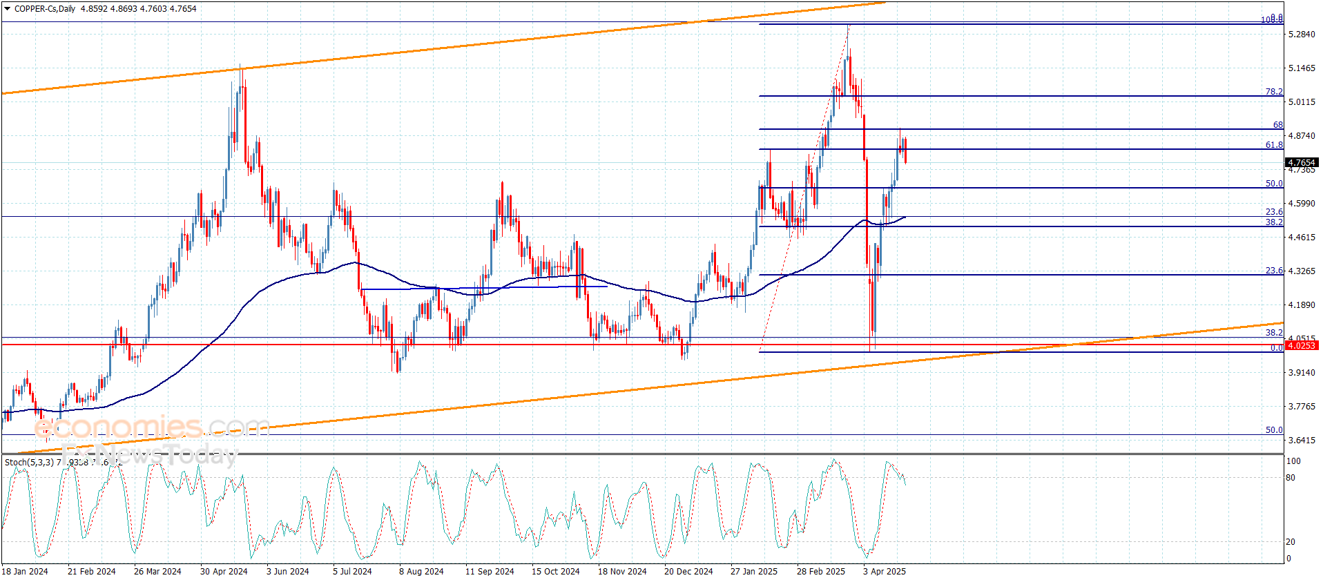 Copper price formed several bearish waves yesterday, to move away from the barrier at $4.9100, to target $4.7600 level again.