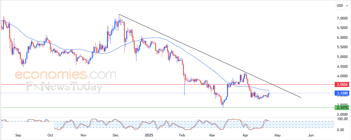 Toncoin’s currency price (TONUSD) rose in latest intraday trading in an attempt to correct the main downward trend as the price trades alongside the short-term trend line, while touching the resistance of the 50-day SMA, as negative signals emerge from the Stochastic after reaching overbought levels compared to the price’s movements, adding negative pressures on the price.