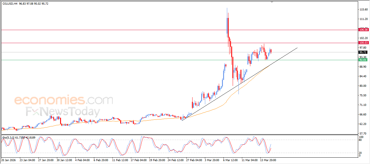 The price of (crude oil) declined in its last intraday trading, attempting to gain bullish momentum that might help it keep the main bullish trend on the short-term basis, with its trading alongside supportive trend line for this path, taking advantage of the dynamic pressure that is represented by its trading above EMA50, besides the emergence of the positive signals from the relative strength indicators, after reaching oversold levels.
