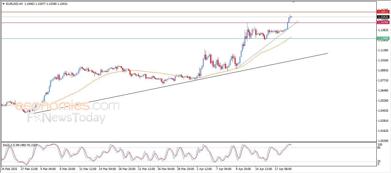 The EURUSD jumped higher in its recent intraday trading and in the week’s opening, to reach the critical level at 1.1470, which represents the previous price target, supported by the emergence of positive signals from (RSI), despite its clear overbought conditions.