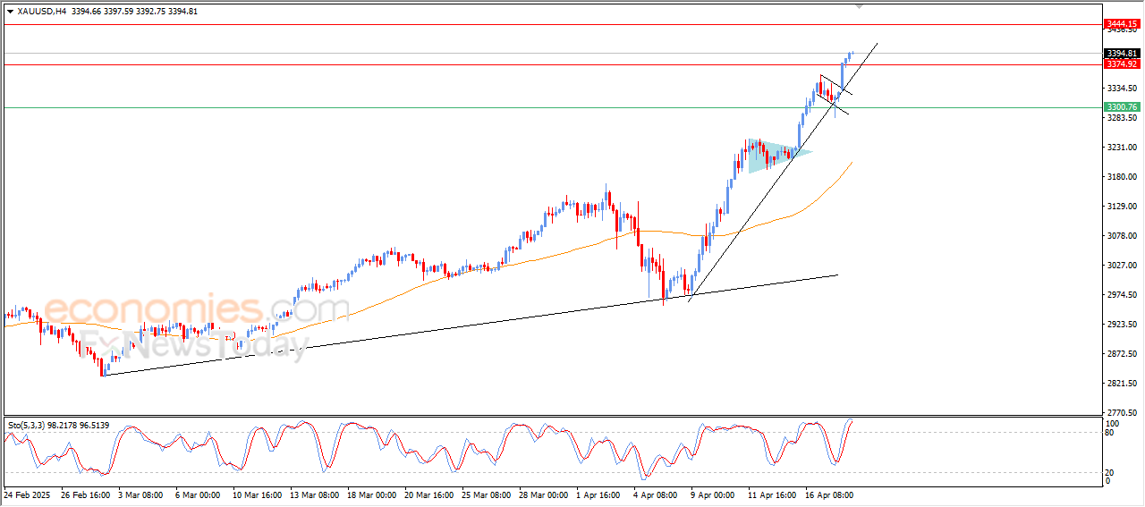 The Gold price witnessed continued upside movement in its recent intraday trading, to breach $3,375, amid the dominance of the main bullish trend and its trading alongside sharp minor bullish trend on the short- term basis, supported by the emergence of positive signals on the (RSI), despite reaching overbought areas.