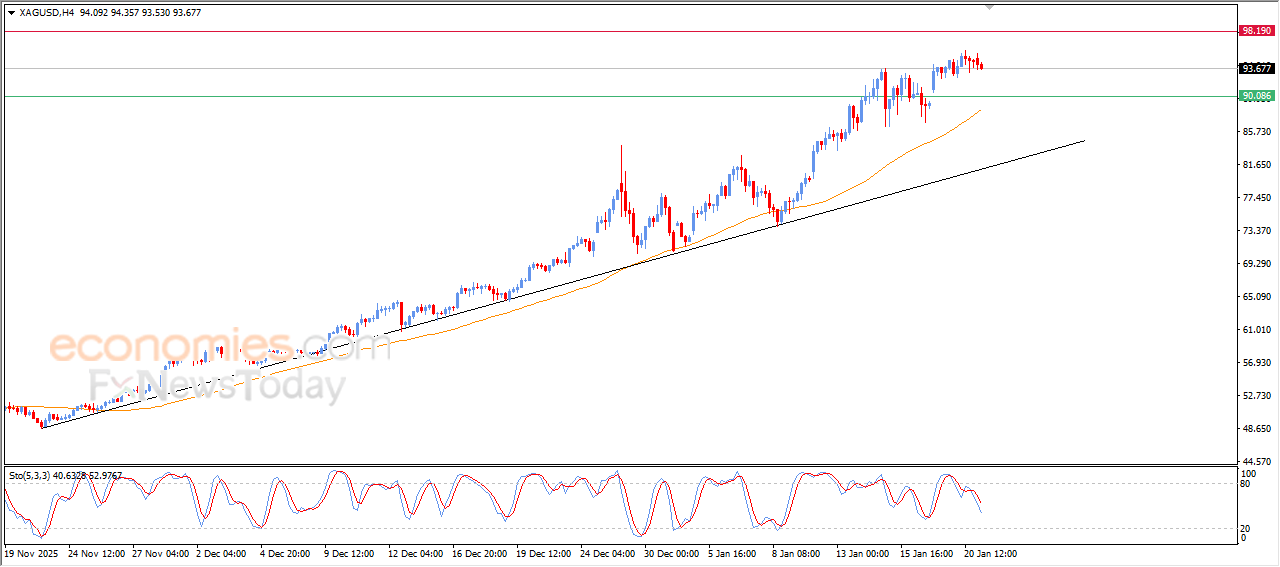 Silver price declined in its last intraday trading, amid the emergence of negative signals from relative strength indicators, after reaching overbought levels previously, to attempt to gain bullish momentum that might help it to recover and record new all-time highs, amid the continuation of the dynamic support that is represented by its trading above EMA50, which reinforces the stability and dominance of the main bullish trend on short-term basis.