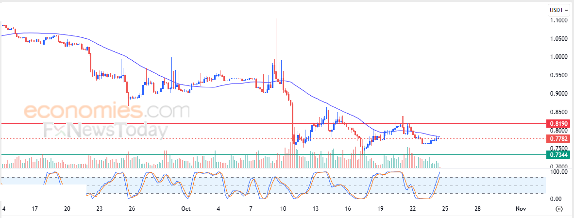 Therefore, we expect the cryptocurrency to decline in its upcoming intraday trading as long as the resistance level of $0.8190 holds, targeting the key support level of $0.7344.