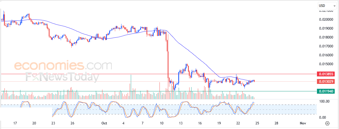 Therefore, we expect the cryptocurrency to decline in its upcoming intraday trading as long as the resistance level of $0.013855 holds, targeting the key support level of $0.011940.