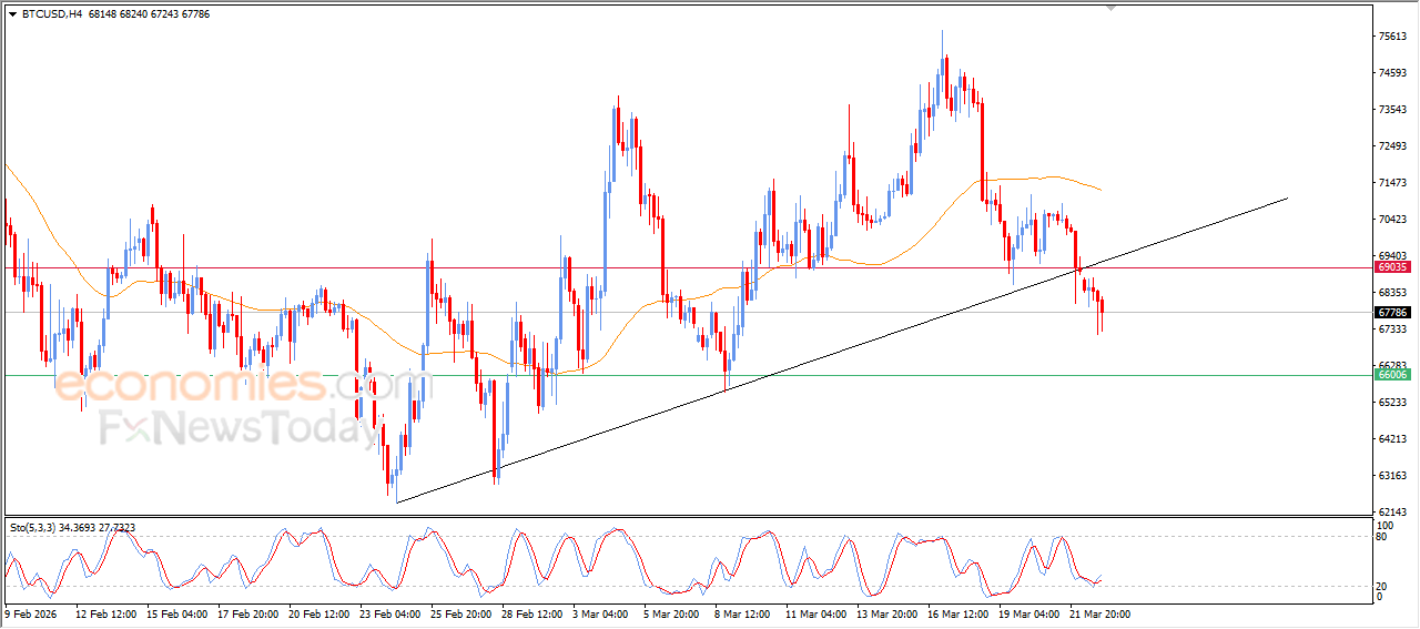 Bitcoin continued its decline during its latest intraday trading, affected by breaking a key short-term ascending trendline, which increased the negative pressure surrounding its movements. The price is also facing additional pressure as it trades below EMA50, strengthening the bearish trend in the near term.