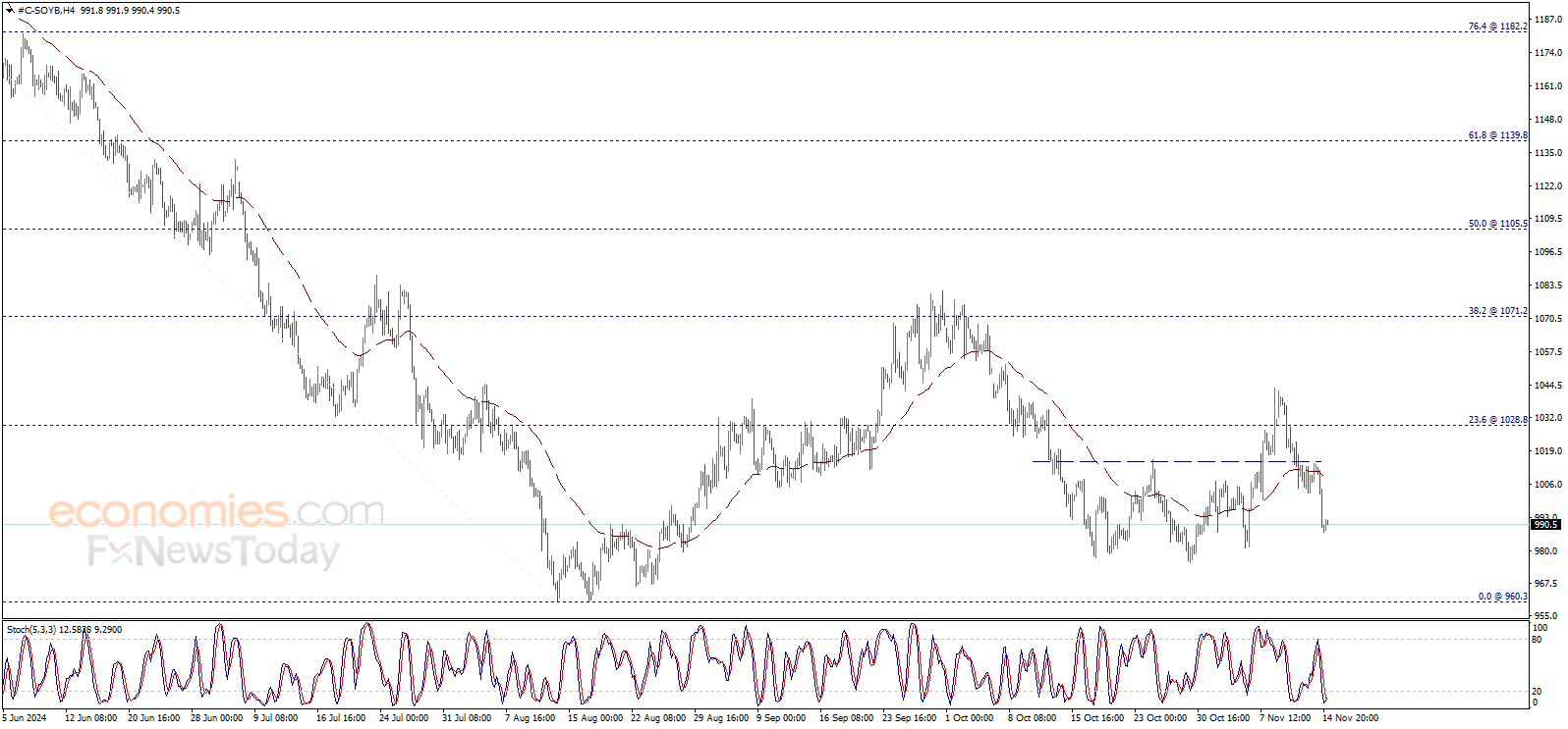 Soybean price traded with clear negativity yesterday to move away from 1000.00$ barrier, reinforcing the expectations of continuing the bearish trend in the upcoming period, waiting to test 980.00$ as a next target, noting that breaking it will push the price towards the recently recorded low at 960.30$.