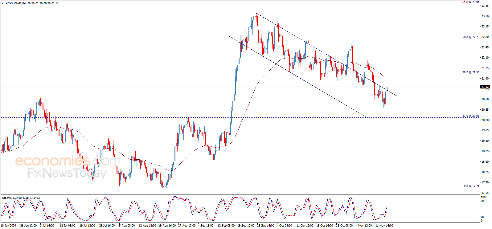 Sugar price traded with clear positivity yesterday to attack the bearish channel’s resistance that appears on the chart, noticing that the EMA50 continues to press negatively on the price to protect the expected negative scenario for the upcoming period, waiting to resume the bearish trend that its next target located at 20.08$.