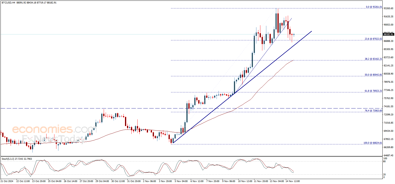 Therefore, these factors encourage us to suggest the rise in the upcoming period, to head towards resuming the main bullish trend again, on its way to achieve new positive targets that reach 94000.00$ areas, noting that breaking 87025.00$ will push the price to achieve more bearish correction that its next target reaches 83165.00$.