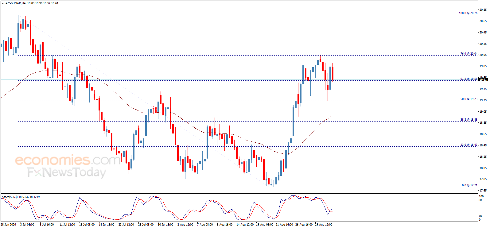 Sugar price traded with clear negativity yesterday and reached 19.23$ level, but it bounced upwards strongly to settle above 19.60$ level again, which keeps the bullish trend scenario active for the upcoming period, waiting to test 20.04$ initially, noting that breaching it will push the price to 20.76$ on the near-term basis.