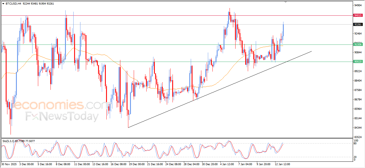 The (BTCUSD) surged higher in its last intraday trading, taking advantage of the dynamic support that is represented by its trading above EMA50, and under the dominance of the main bullish trend on the short-term basis, with its trading alongside supportive trend line, besides the emergence of positive signals from the relative strength indicators, despite reaching overbought levels.