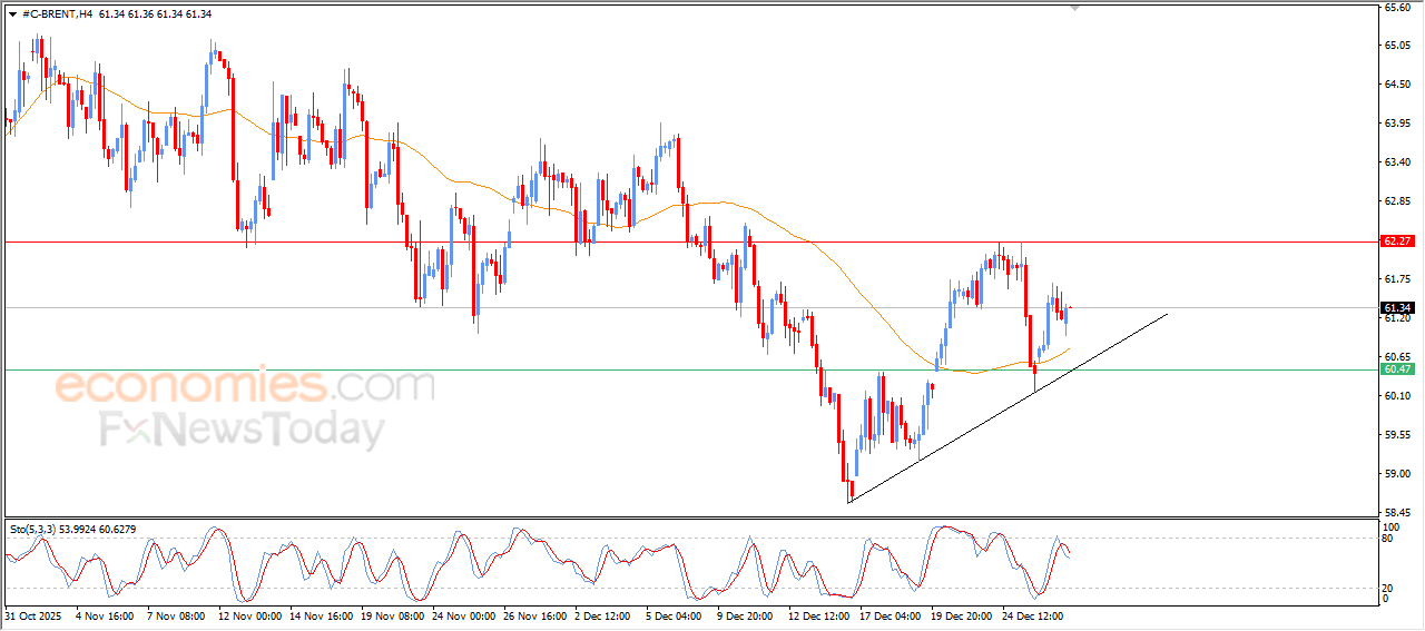 The (Brent) price rose in its last intraday trading, amid the dominance of bullish corrective wave on the short-term basis, with its trading alongside supportive trend line for this trend, besides the continuation of the positive pressure due to its trading above EMA50, on the other hand, we notice the emergence of the negative signals from the relative strength indicators after reaching overbought levels, which might reduce the upcoming gains.