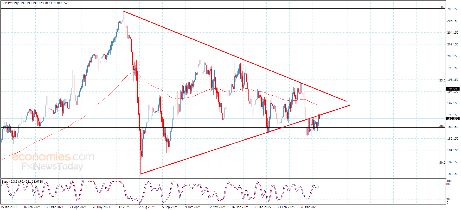 The GBPJPY pair neediness to the negative momentum in the last report, to notice the attempt of providing new pressures on the resistance at 190.10, then repeat forming bearish waves to settle near 189.50.