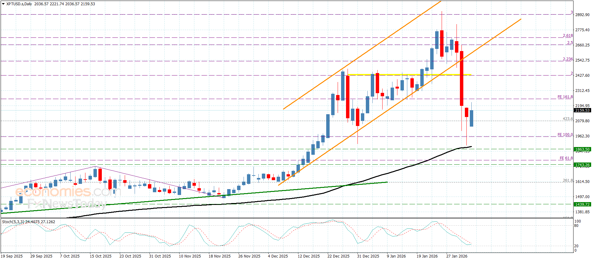 Platinum price succeeded in surpassing the negative pressures yesterday, to settle above $1950.00 level, activating with the moving average 55 positivity, forming some bullish waves to settle near $2150.00.