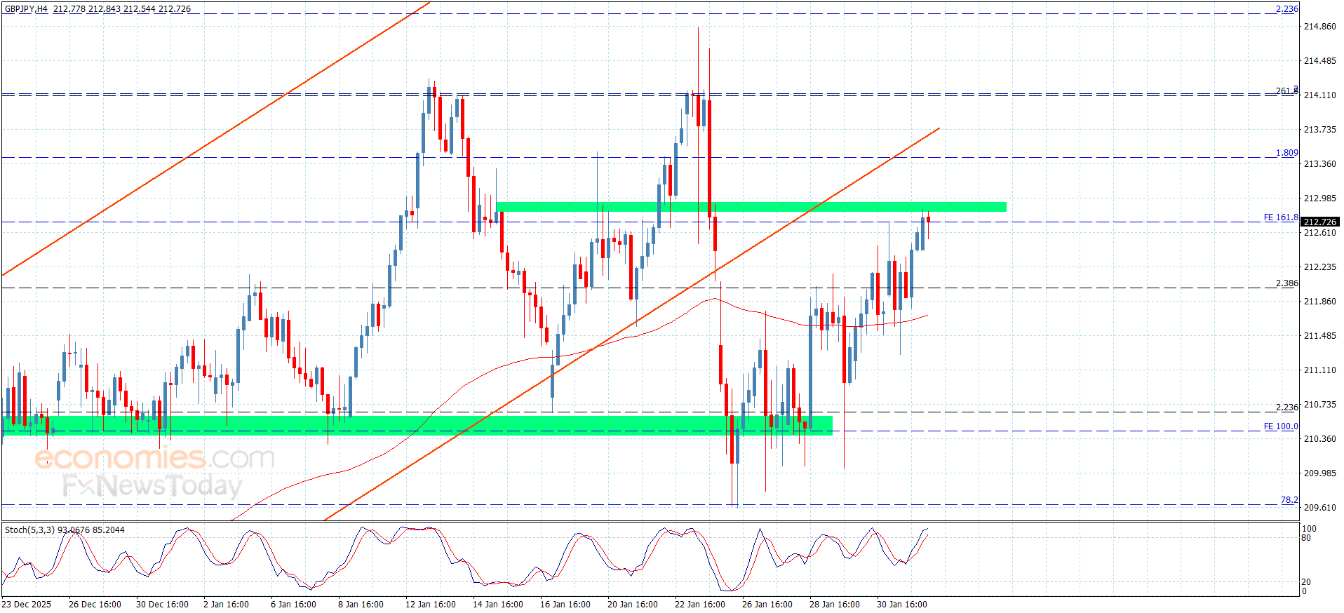 The GBPJPY pair ended the bullish rally by facing an important barrier near 213.00, which forces it to form weak sideways trading by its fluctuation near 212.75.