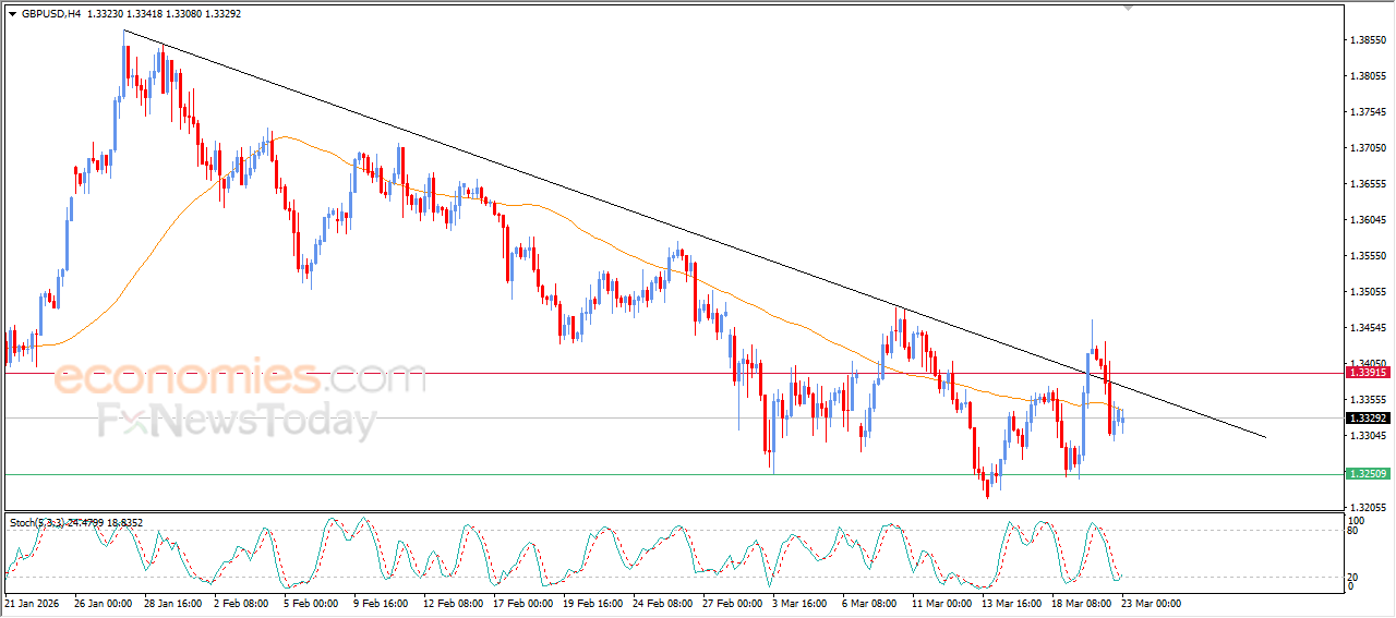 The GBPUSD pair es experiencing fluctuating trading on its last intraday levels, in attempt to recover some of its previous losses, attempting to offload some of its clear oversold levels on the relative strength indicators, especially with the emergence of positive overlapping signals from them, after its trading alongside main bearish trend line on short-term basis that it failed to breach it previously, and there is negative and dynamic pressure that is represented by its trading below EMA50, increasing the likelihoods of the negative pressures continuation on near term basis.