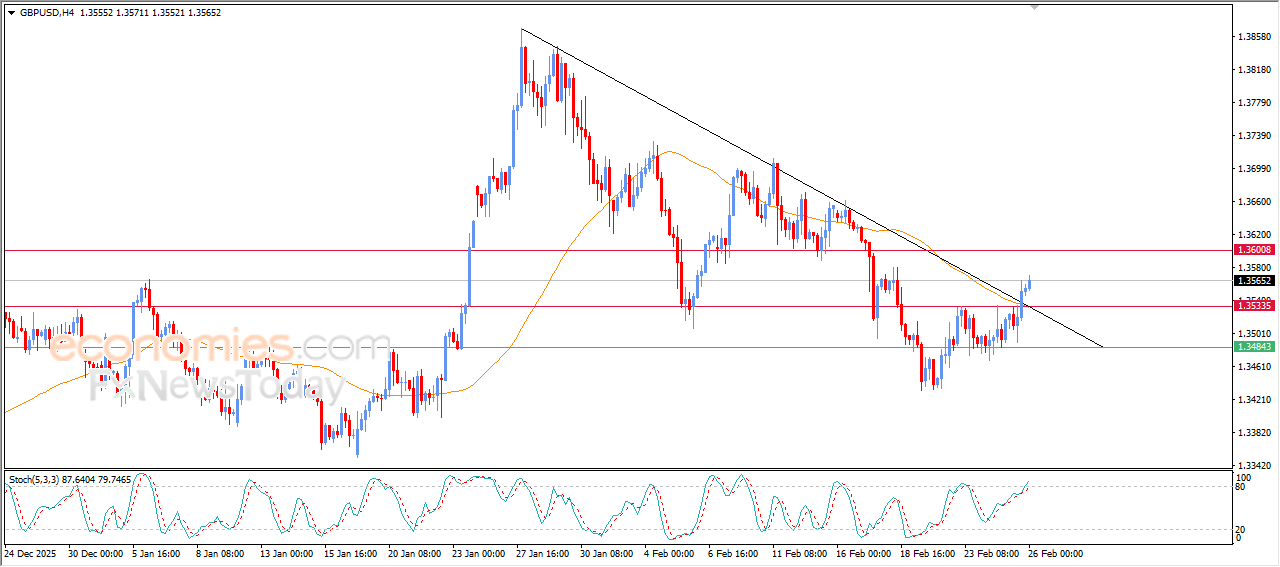 GBPUSD extended its gains in its last intraday trading, affected by breaching bearish corrective trend line on short-term basis, accompanied by surpassing EMA50, getting rid of the negative pressures, supported by the emergence of the positive signals from relative strength indicators, despite reaching overbought levels, which might reduce the upcoming gains temporarily.