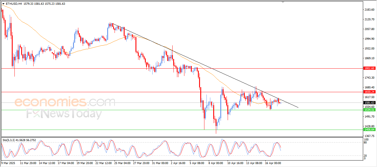 Ethereum’s price (ETHUSD) settles downside in its recent intraday trading, as negative signals appear on the Relative Strength Index (RSI) indicators after reaching highly overbought levels, exaggerated compared to the price movement, creating a negative divergence. This is accompanied by continued negative pressure due to the price trading below EMA50. Additionally, the dominance of the main bearish trend and the price trading along a short-term bearish trend line continue to press on the price.
