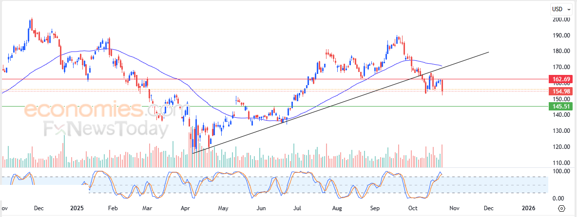 Therefore, we expect the stock to decline in its upcoming trading sessions as long as the resistance level of $162.70 holds, targeting the support level of $145.50.