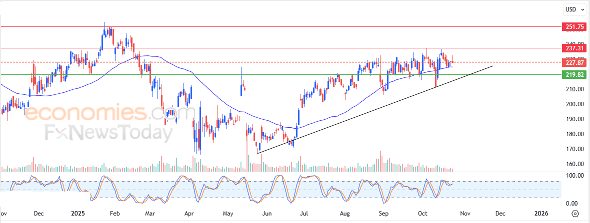 Therefore, we expect the stock to rise in its upcoming trading sessions as long as the support level of $219.85 holds, targeting the important resistance level of $237.30 in preparation to test it.