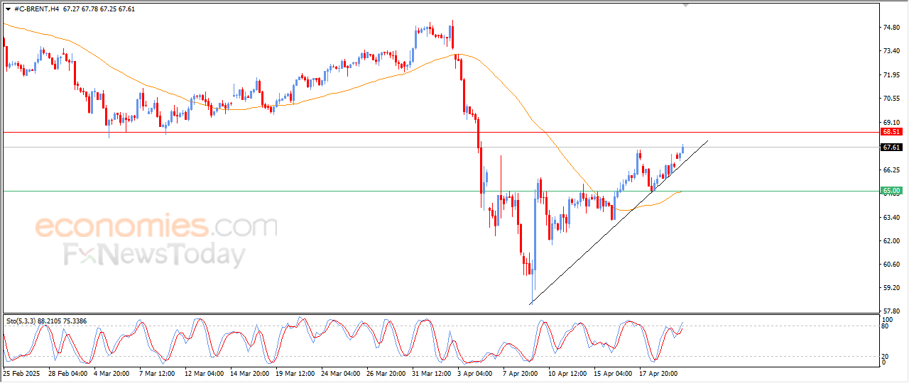 Brent Crude oil price rose I its last intraday trading, keeping the bullish correctional bias on the short-term basis, supported by its trading above EMA50, but we notice that the (RSI) reach the overbought levels, which might decelerate the upcoming gains.