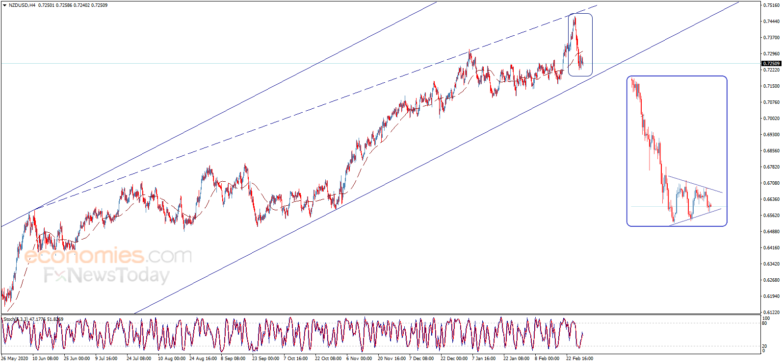 The NZDUSD pair’s recent trades are confined within bearish pennant pattern that appears on the minor image, thus, the price needs to break 0.7240 to get negative motive that assists to rally towards our waited negative target at 0.7160.