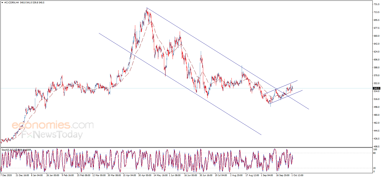 Corn price continues to fluctuate inside the bearish flag pattern, waiting to break it support line that rises now to 526.00 to motivate the price to return to the main bearish track, noting that the first target is located at 500.00.