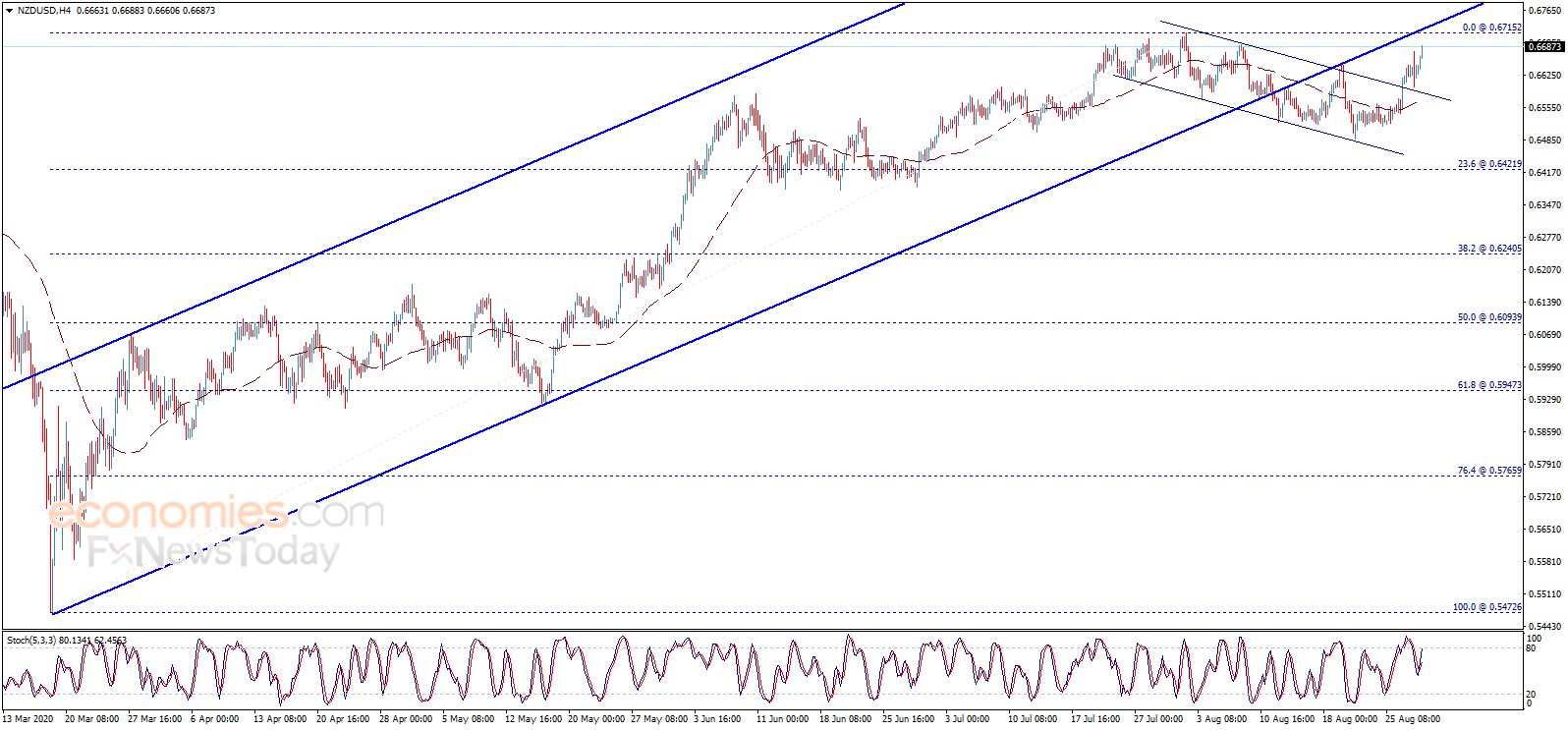 The NZDUSD pair resumes its positive trading to reach the thresholds of the waited target at 0.6715, we expect the continuation of the rise to surpass this level and head towards 0.6800 that represents our next target.