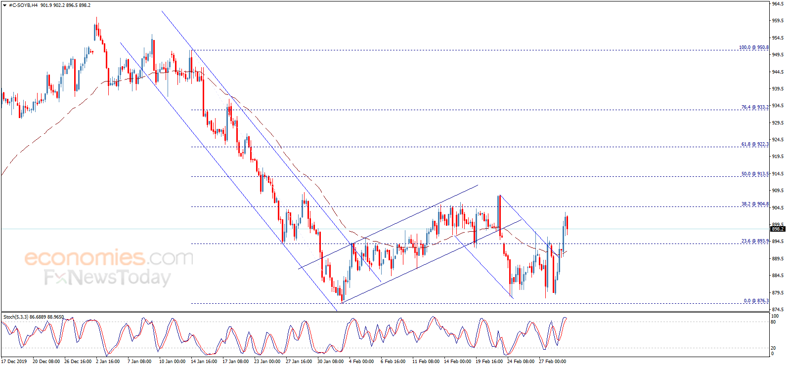 Soybean price approached 904.80 level and shows bearish bias now, and it might test the key support 893.90 before attempting to rise again.