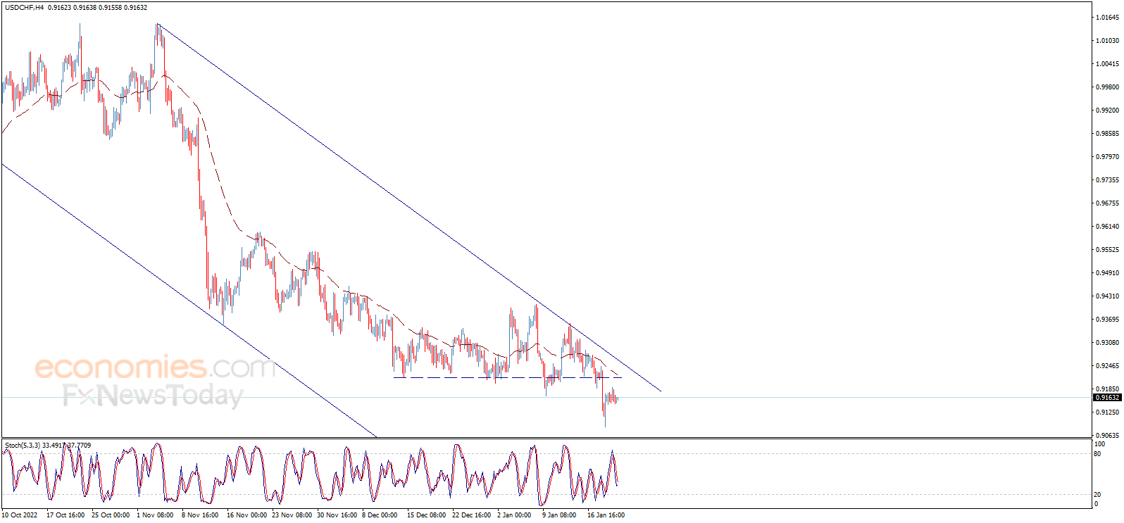 The USDCHF pair fluctuates around 0.9160 since yesterday, falling under continuous negative pressure coming by the EMA50, waiting to motivate the price to resume the bearish wave that its next main target located at 0.9020.
