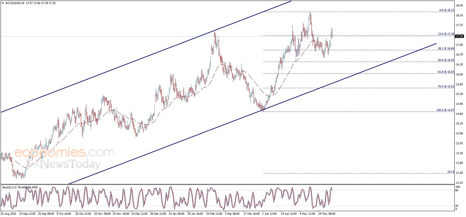 Sugar price traded with strong positivity to attack 17.40 level, but it ended the last sessions below this level, which keeps the bearish trend scenario active in the upcoming period, supported by stochastic negativity, waiting for heading to 16.85 then 16.45 as main targets.