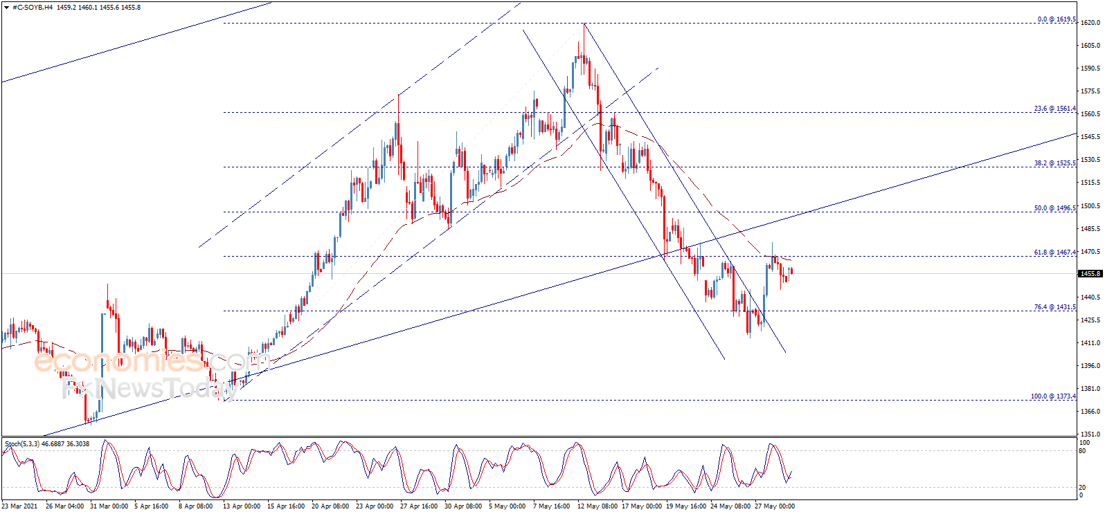Soybean price settles below 1467.40 level, to keep the negative pressure valid in the upcoming period, supported by the EMA50, waiting for heading to 1431.50 as a next main target.