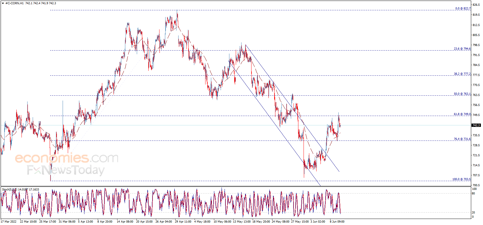 Corn price succeeded to touch our waited target at 749.00 and found solid resistance there, to show some temporary bearish bias, noticing that stochastic enters the oversold areas, waiting to motivate the price to resume the positive trades to surpass the mentioned level and open the way to head towards 763.10 as a next main target.