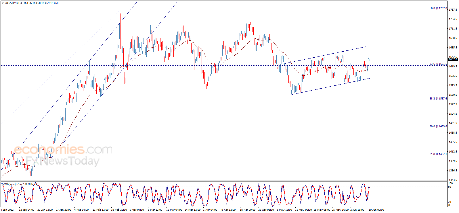 Soybean price rallied upwards to breach 1621.50 level and settles above it, to head towards achieving expected gains in the upcoming sessions, targeting testing 1671.00 level initially, which breaching it represents the key to extend the bullish wave towards 1700.00 followed by 1757.00.