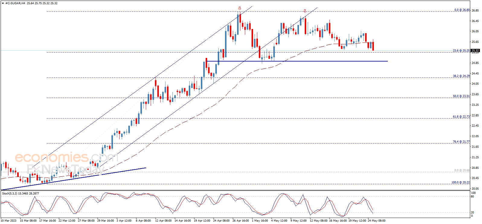 Sugar price provided new negative trades yesterday to reach the thresholds of the waited target at 25.25, and we expect to break this level to open the way to extend the correctional bearish wave to reach 24.30 aeras.