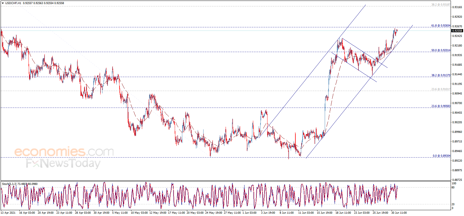 The USDCHF pair traded with clear positivity yesterday to reach the waited target at 0.9265, organized inside the bullish channel that appears on the chart, which supports the chances of surpassing the mentioned level and open the way to head towards 0.9315 as a next station.