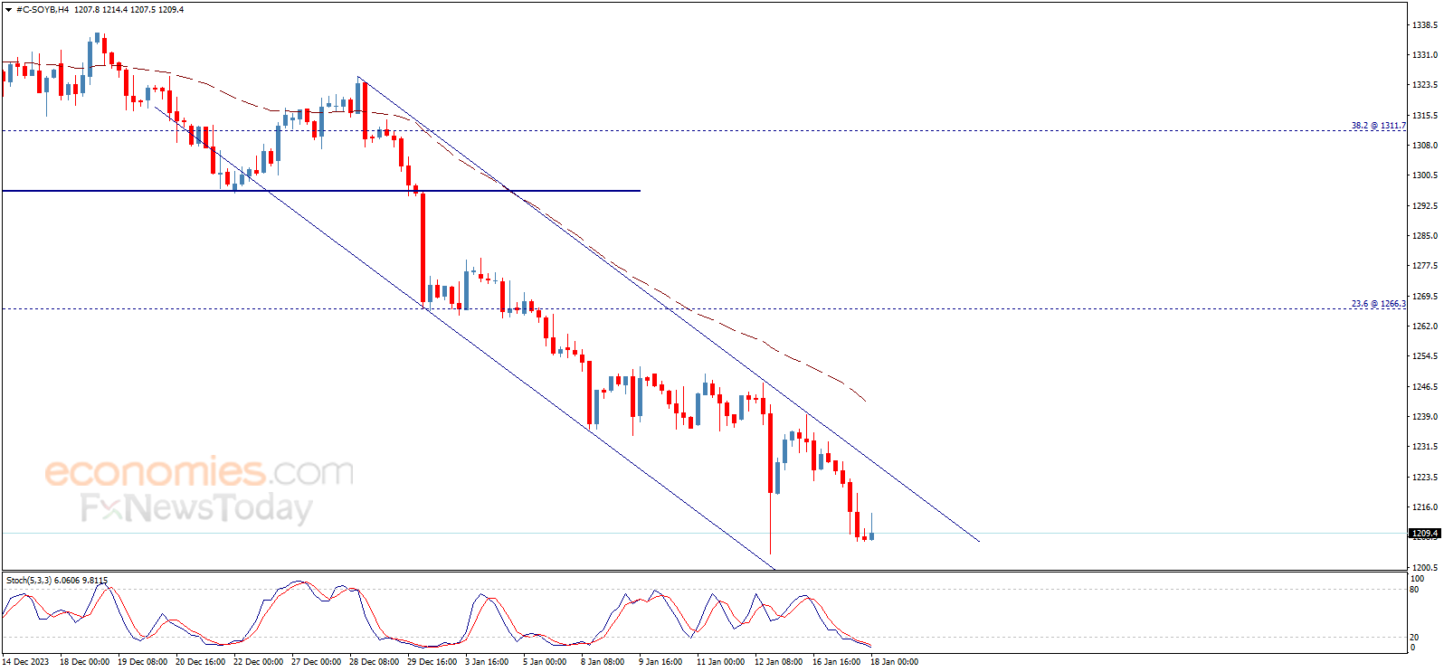 Soybean price resumed its negative trading clearly to reach 1200.00 barrier, reinforcing the expectations of continuing the bearish trend in the upcoming sessions, noting that we are waiting to test 1193.00 initially, which breaking it represents the key to head towards 1180.00 followed by 1155.00 levels as next negative stations.