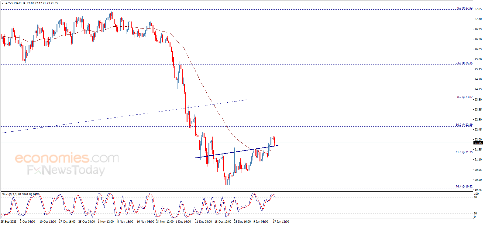 Sugar price retested the breached neckline of the inverted head and shoulders’ pattern and keeps its stability above it, which keeps the bullish trend scenario active for the upcoming period, which targets 22.60 mainly.