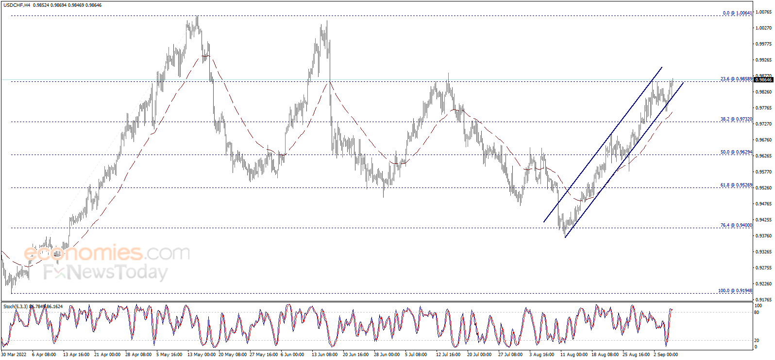 The USDCHF pair returns to rise and trade within the bullish channel that appears on the chart, to resume the bullish track within this channel and head towards achieving expected gains in the upcoming sessions, on its way to visit 0.9920 followed by 1.0000 levels as next main stations.