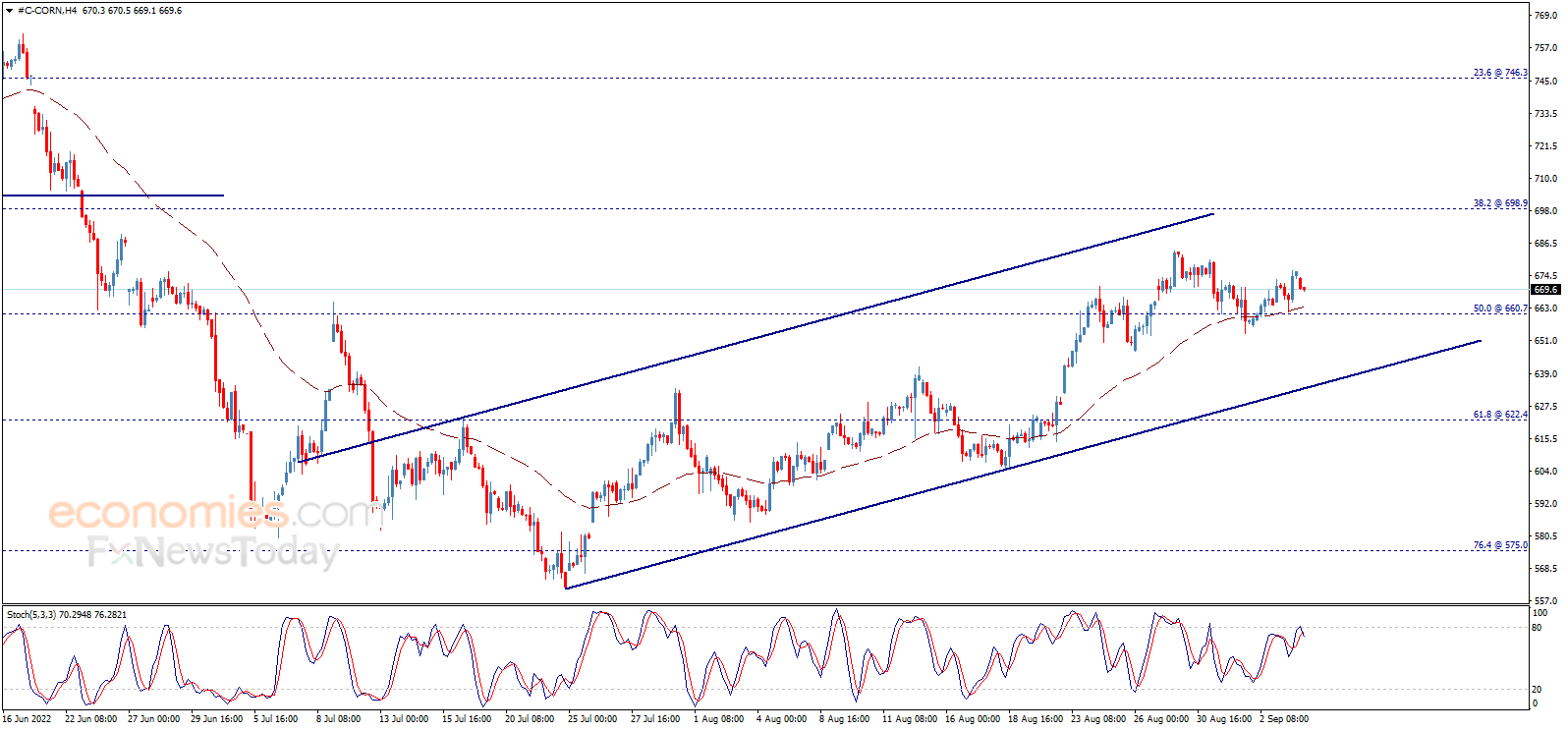 Corn price provided positive trades yesterday, but it begins today with slight bearish bias affected by stochastic negativity, waiting to get positive momentum that assists to push the price to resume the main bullish trend, which its next targets located at 690.00 followed by 698.90.